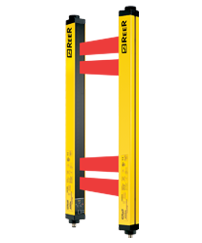 Barriera di sicurezza per controllo accessi con Restart automatico/manuale selezionabile e EDM. Alta portata con tecnologia Dual-Beam