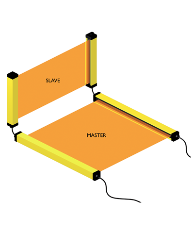 Barriera di sicurezza per rilevamento mano con Restart automatico/manuale selezionabile e EDM. Per collegamento in serie. Master