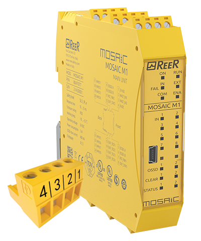 Modulo principale standard. 8 ingressi. 2 coppie di uscite OSSD (SIL 3). Morsettiere terminali a vite