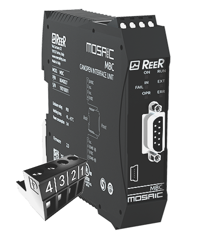 | Collegamenti | Morsetti estraibili, contatti a vite - connettore CANopen |