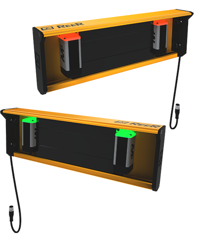 Set di staffe di Muting con 2 sensori M5H. Logica di Muting a L (solo uscita). Raggi incrociati o paralleli. Alta portata