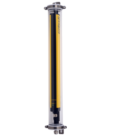 Access Control Safety Light Curtain with Watertight Enclosure. IP69K/Ecolab Certified. Automatic/Manual Restart and EDM. Extended Range. Prewired with 10 m Lead Cable