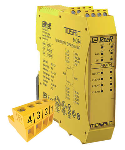 Safety Relay Expansion Unit. 4 Safety Relay Outputs with Configurable Outputs. Screw Terminal Blocks