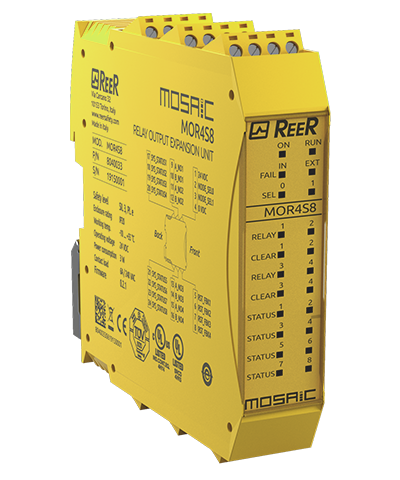 Safety Relay Expansion Unit. 4 Safety Relay Outputs with Configurable Outputs. 8 Status Outputs. Screw Terminal Blocks