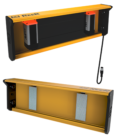 Set of Muting Brackets with 2 MTRX (Transceiver) Sensors. L-Logic (Exit Only). Crossed or Parallel Beams