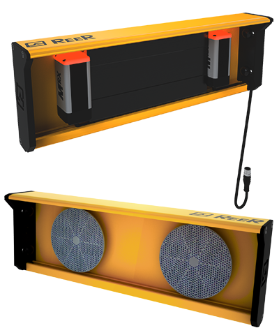 Set of Muting Brackets with 2 MTRX H (Transceiver) Sensors. L-Logic (Exit Only). Crossed or Parallel Beams. Extended Range